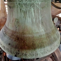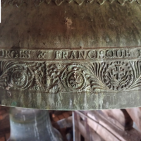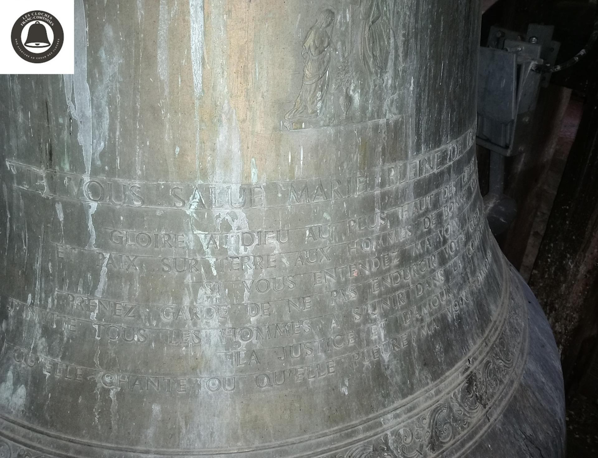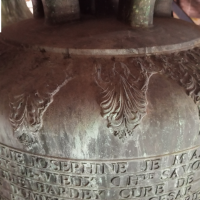 La cloche 3 cette fois-ci, que je peux clairement mettre dans le top 1 en terme de sonorité et de beauté, ainsi que des inscriptions ! Sur cette dernière, on peut voir une infinité de frises très finements travaillées dans une belle cire, ainsi que les différents personnages présent également sur cette dernière. La phrase qui m'a fait le plus chaud au coeur, est : "M EDOUARD CAREL ANCIEN CURE DE DOMMARTIN SON SUCCESSEUR MR ELIE BARDEY ET LES COMMUNES DE DOMMARTIN ET D HOUTAUD M ONT DONNE LA VIE ET M ONT AMENEE ICI POUR AIDER MES DEUX SOEURS A CHANTER LES LOUANGES DU SEIGNEUR", phrase juste trop mignonne !