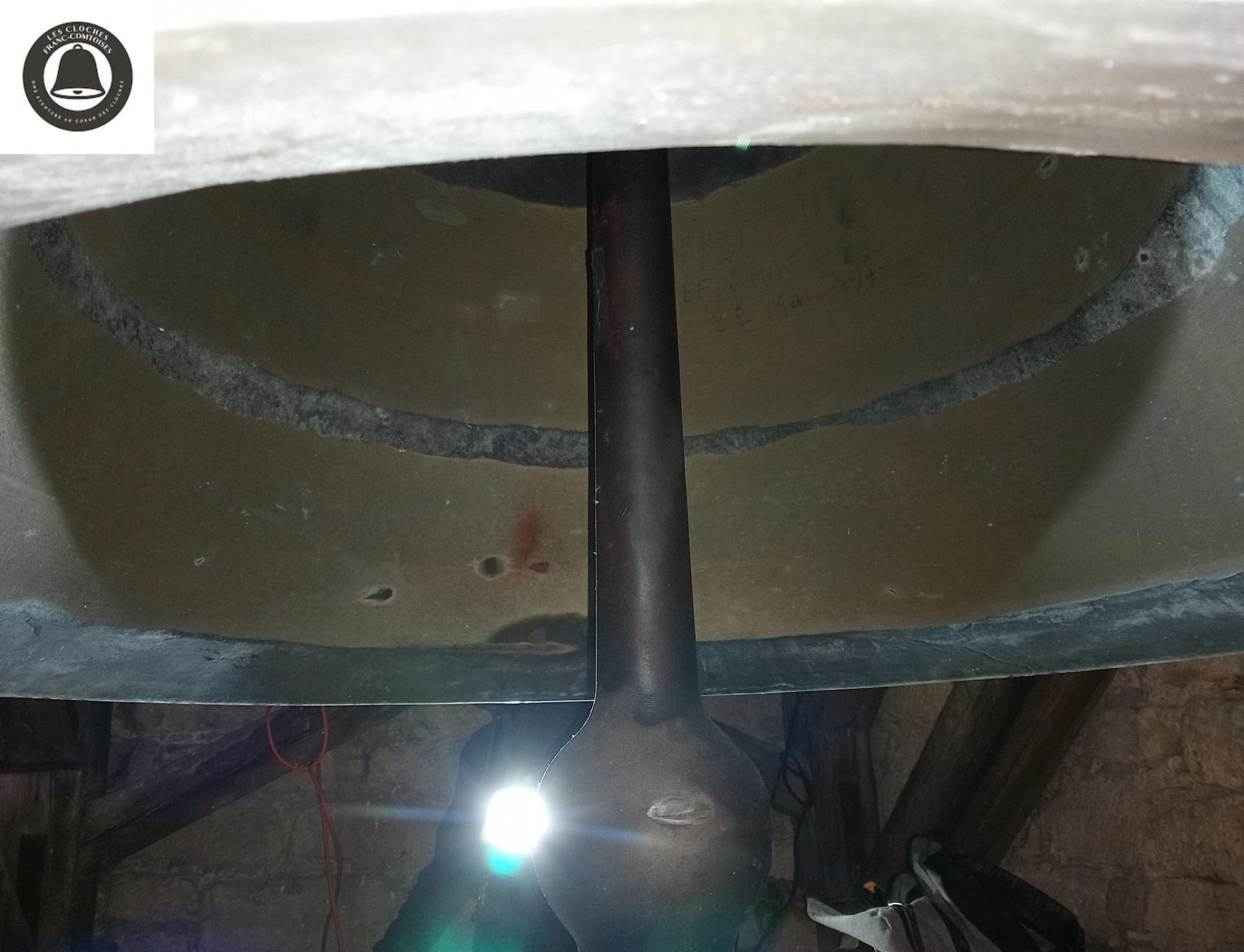 Et la dernière, la plus grosse et la plus jeune de cet ensemble, se nomme "Marie-Paule-Martine". Elle fut fondue par les établissements Paccard à Annecy-Le-Vieux (elle ne porte pas de signature, mais au vu des littératures ainsi que des propos tenus par Medhi Hureaux, lors de sa venue dans le clocher de Dommartin, je peux certifier 100% Paccard). Cette dernière remplace le duo Borle, car la grosse Brole s'est fêlée. Alors... elle fut remplacée par Paccard !
