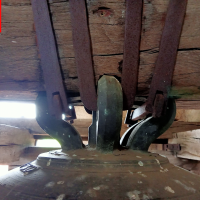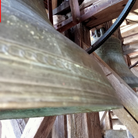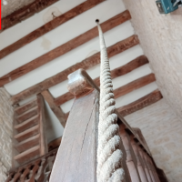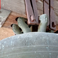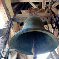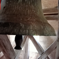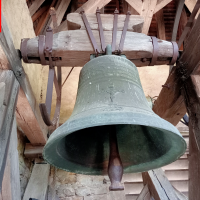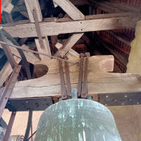 Dès que nous poussons la porte du parvis, nous constatons le porche, avec un escalier nous menant à la tribune de l’église et au clocher, avec une corde qui pend, nous allons en parler plus tard !