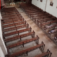 Puis, nous poussons la porte de la nef, et nous voici dans une église assez sobre mais charmante, avec deux chapelles, celle de gauche avec écrit : « MONSTRA TE ESSE MADREM » qui veut dire : « Montre-leur que tu es la mère », en parlant de Marie...