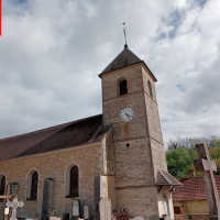 L’église de Scey-En-Varais est une église simple : un clocher avec toiture pyramidale, une nef en croix latine, ce qui relève le style gothique de ce lieu de culte, 2 baies sur 4 sans abat-sons, et enfin, une seule horloge !
