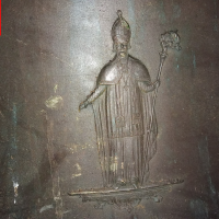 Nous retrouvons aussi des figurines, tels que la Vierge à l’Enfant-Jésus, un Evêque, un Christ en Croix, ainsi qu’un ange tenant un livre, qui est sans doute la Bible.